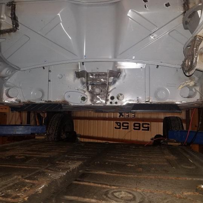 Cary – Here's your starting point. Based on the 3 cars I looked at here at MiddleMotors, the first bolt is 15mm from the jack point plate. But beware ……………. Most cars have seen some sort of rust repairs, so use the 15mm as a starting point. But make sure you can drill the holes and get your 8mm socket or nut driver on the other two 5mm bolts.